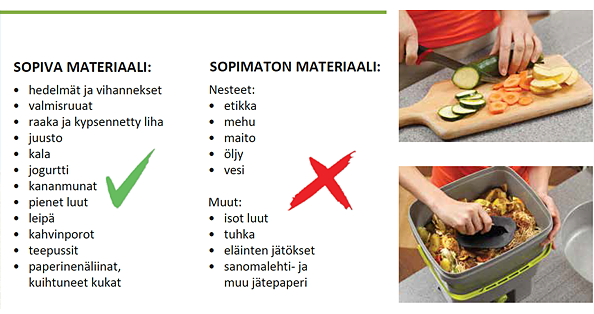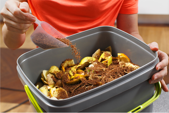 Lähes kaikki orgaaninen jäte kelpaa BOKASHI - kompostoriin. On hyvä pilkkoa isommat palat pienempiin osiin fermentoitumisprosessin nopeuttamiseksi. Bokashirouheen sisältämät luonnon mikro-organismit käynnistävät fermentoitumisprosessin BOKASHI-keittiökompostorissa.
